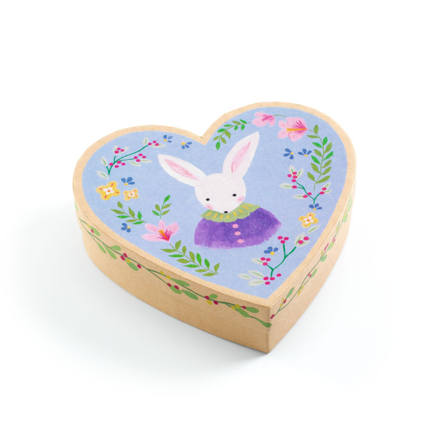 Questa graziosa scatola a forma di cuore decorata con un tenerissimo coniglietto nasconde 3 adorabili bracciali.