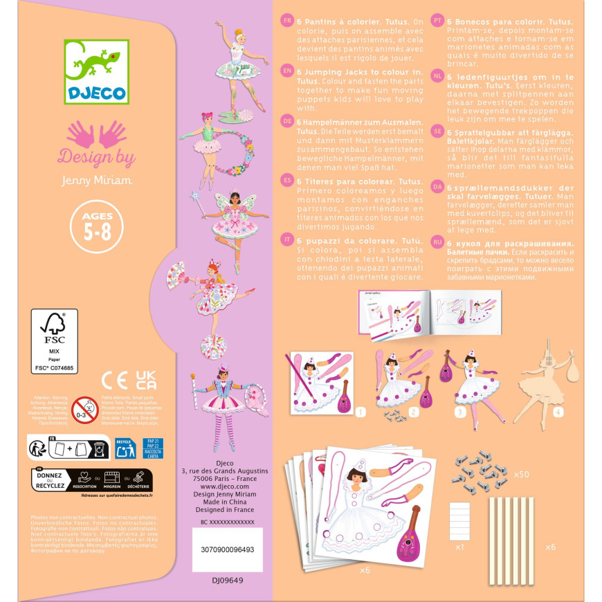 Una cartellina di colorazione e assemblaggio per realizzare 6 burattini. Il bambino o la bambina colora e stacca i pezzi di cartoncino. Poi li assembla per creare dei graziosi burattini. Non resta altro che animare e far danzare tutte queste signorine in tutù!