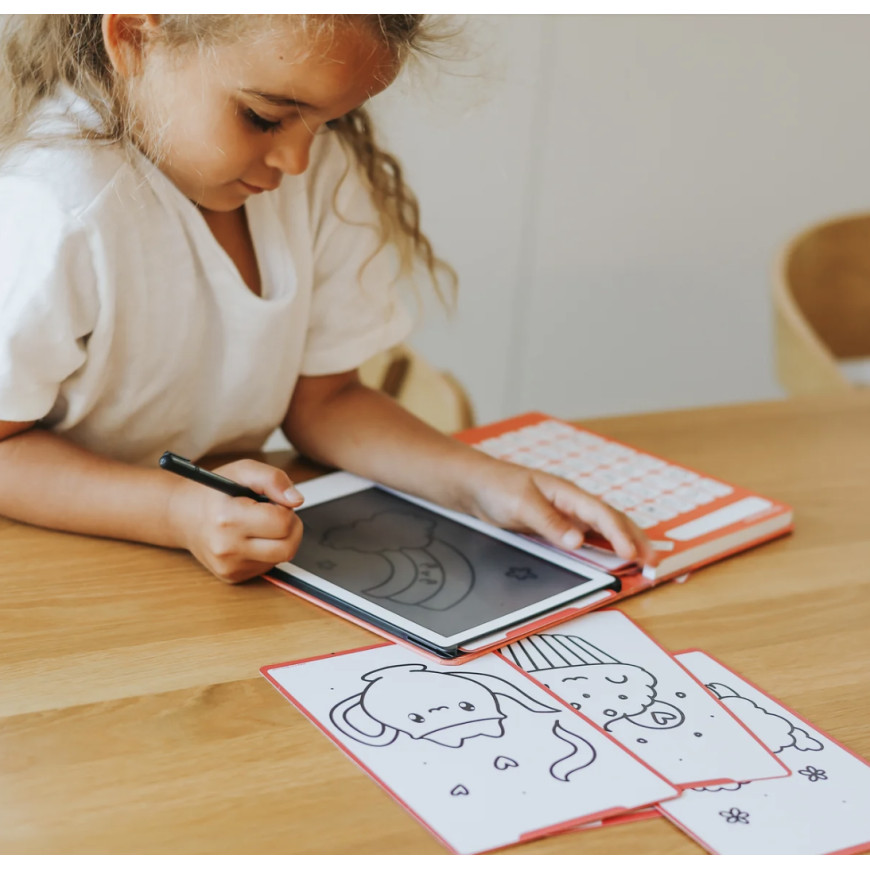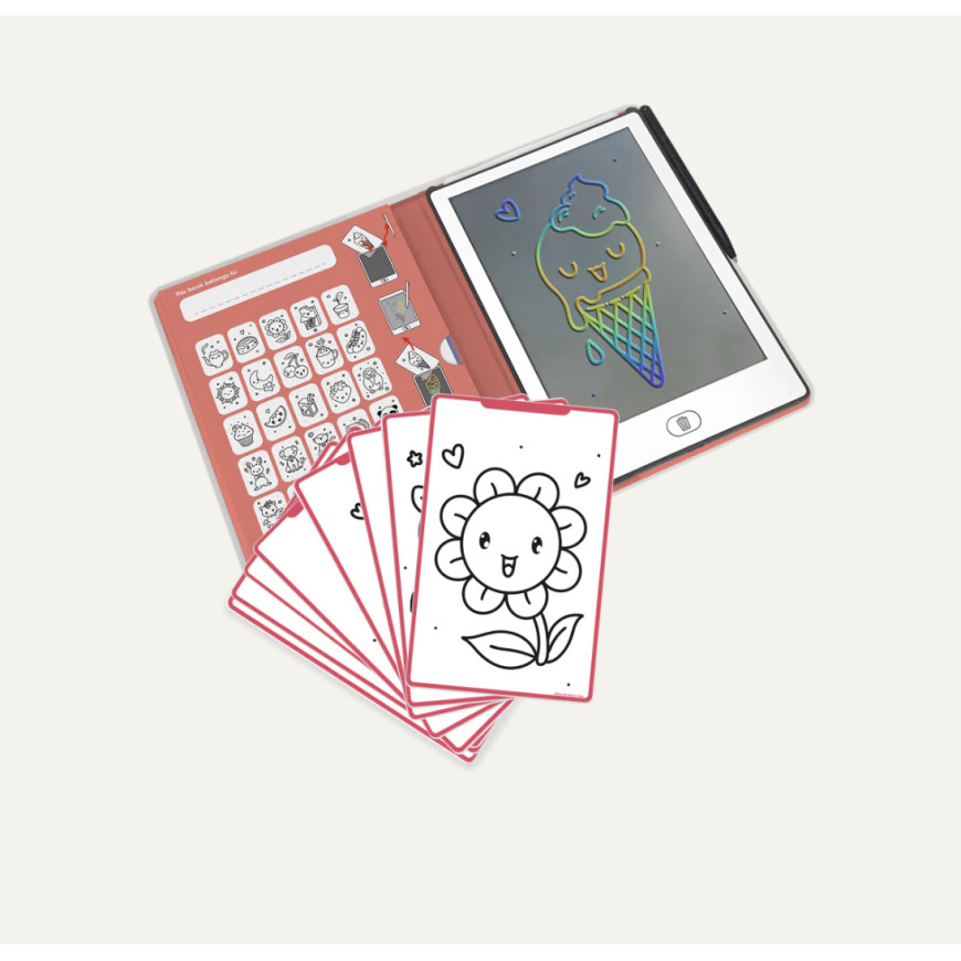 Progettato per stimolare la creatività e incoraggiare l'apprendimento indipendente, questo album da disegno con schermo LCD è il compagno perfetto per i giovani artisti in erba. Ogni tavoletta contiene 30 disegni da trasferire con una penna dedicata. Leggera e compatta, si infila facilmente in qualsiasi borsa, permettendo al bambino di creare ovunque vada.