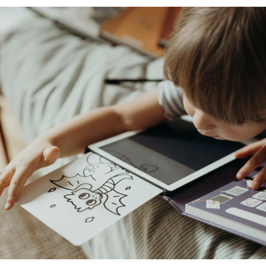 Progettato per stimolare la creatività e incoraggiare l'apprendimento indipendente, questo album da disegno con schermo LCD è il compagno perfetto per i giovani artisti in erba. Ogni tavoletta contiene 30 disegni da trasferire con una penna dedicata. Leggera e compatta, si infila facilmente in qualsiasi borsa, permettendo al bambino di creare ovunque vada.