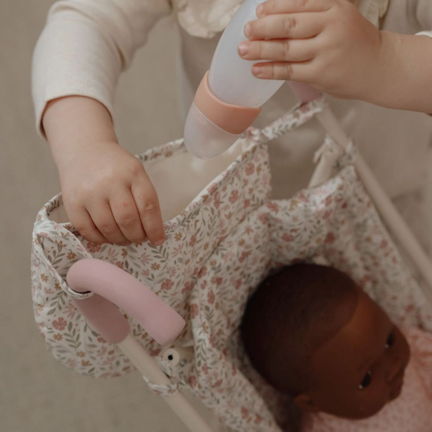 Porta la tua bambola a fare una passeggiata! Il passeggino per bambola in legno è decorato con l'incantevole collezione Flowers & Butterflies. Il solido telaio è ben rifinito e le ruote in legno hanno un bordo in gomma per una protezione extra. Caratteristiche: