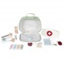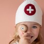 Questo set comprende: 1 valigetta del medico in tessuto, cerotti (4 diversi colori), termometro, siringa, tubo per unghento, stetoscopio, martello riflesso, misuratore pressione, otoscopio, cuffia da infermiere.